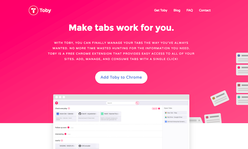 With toby, you can finally manage your tabs the way you’ve always wanted. No...