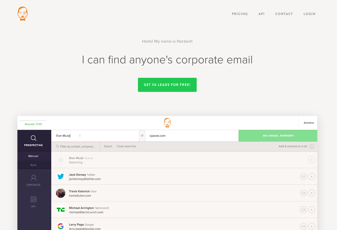 Hello! My name is Norbert! I can find anyone's corporate email