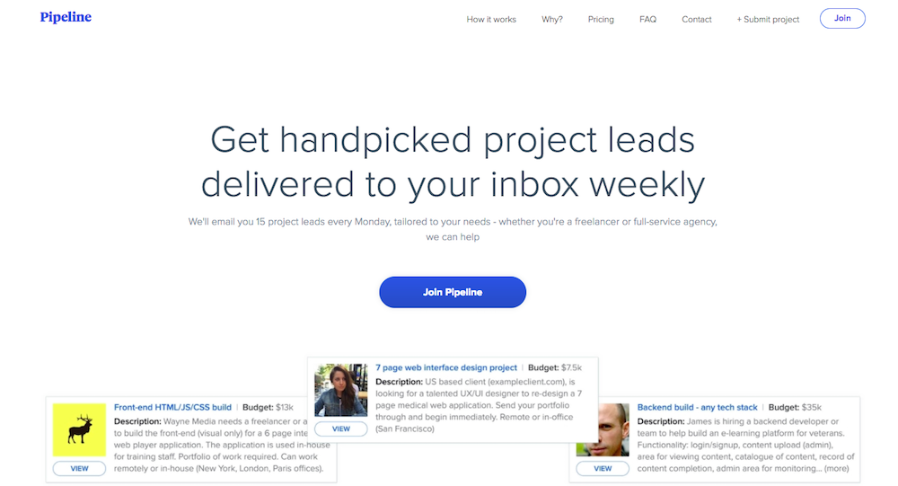 Pipeline sends freelancers handpicked projects every Monday - hirers can submit...