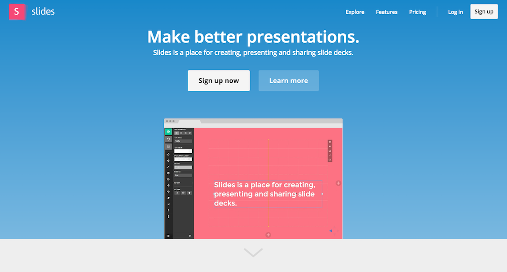 Slides is a place for creating, presenting and sharing slide decks.