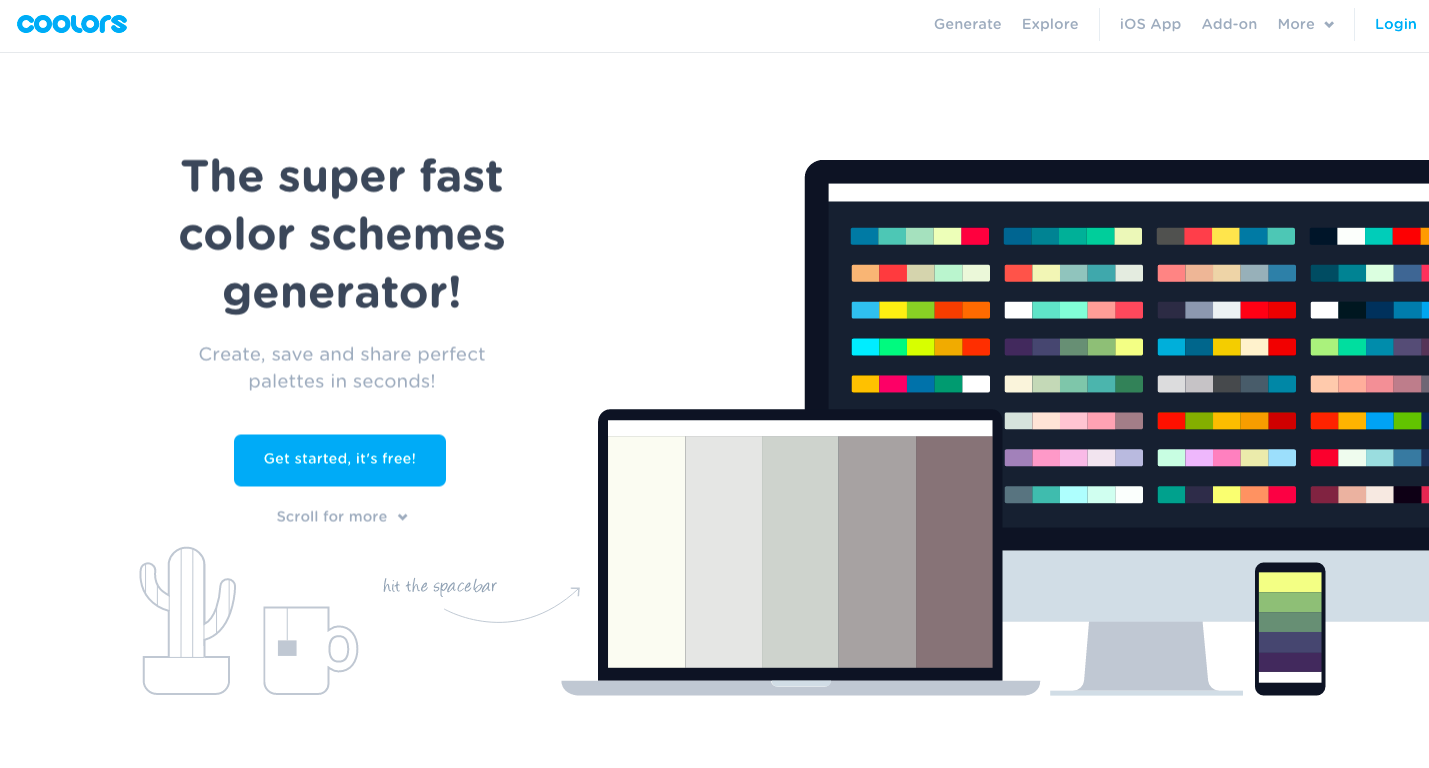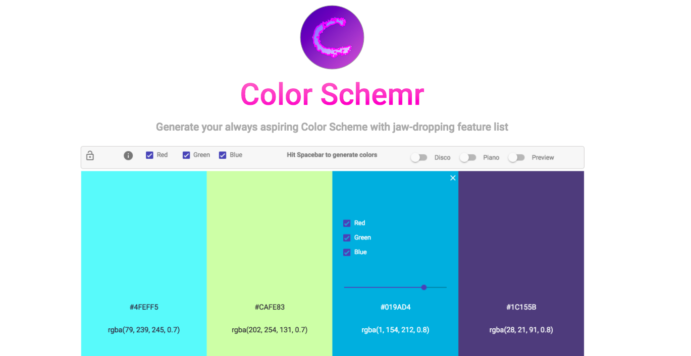 Super fast color schemes generator for cool designers