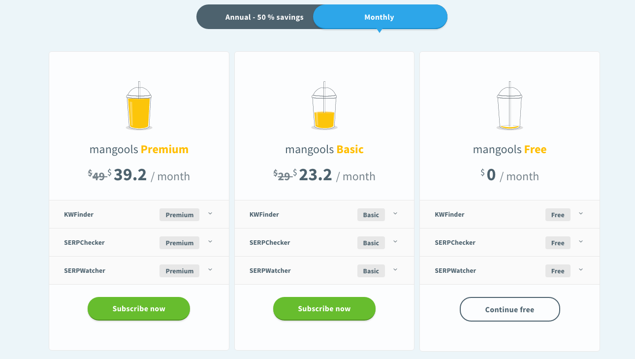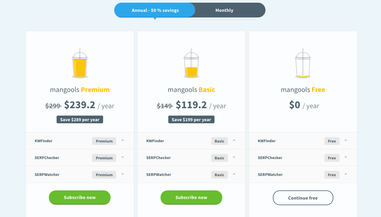The basic plan of KWFinder is $12.42/month if you choose the annual payment plan. This will save you $199 per year. You can also choose the monthly basic plan and pay $29/month.