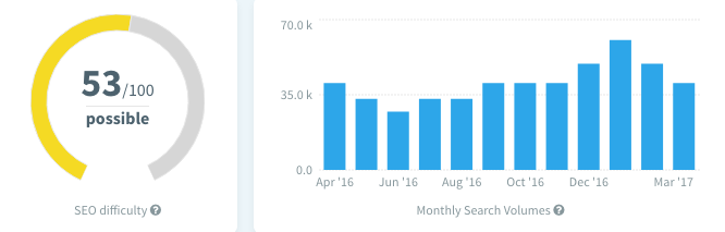 When we look at the right-hand side of the screen, we can see the SEO difficulty and monthly search volumes in a graphical view.