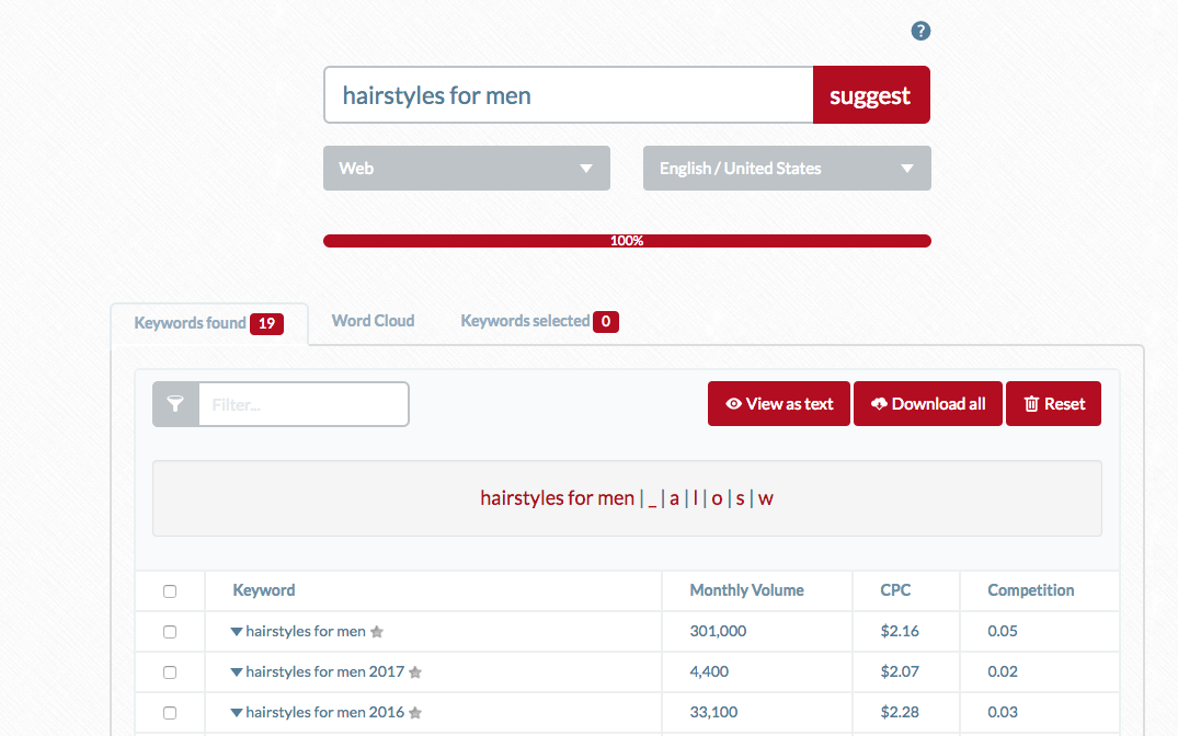 Let’s switch our search to “hairstyles for men” and see the results. The important thing here is to find a keyword that is trending with a high search volume and low SEO difficulty. You can filter your results based on SEO difficulty using results filter feature of KWFinder.