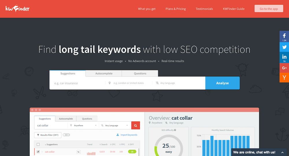 KWFinder helps you to find long tail keywords with low SEO competition. Generate long tail keywords related to your niche with high search volumes and low keyword SEO difficulty. Now, you can read our review from here and get your 20% discount!